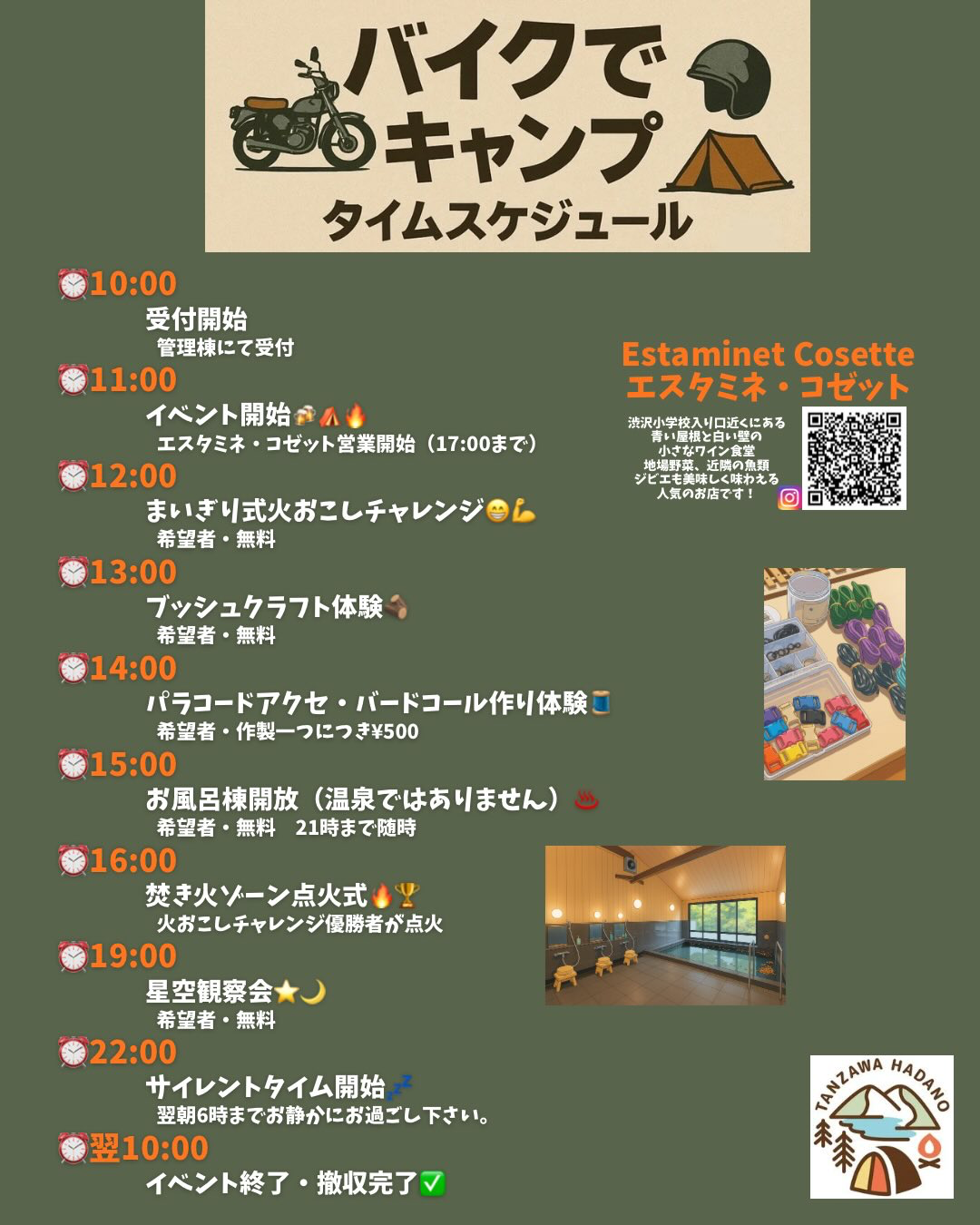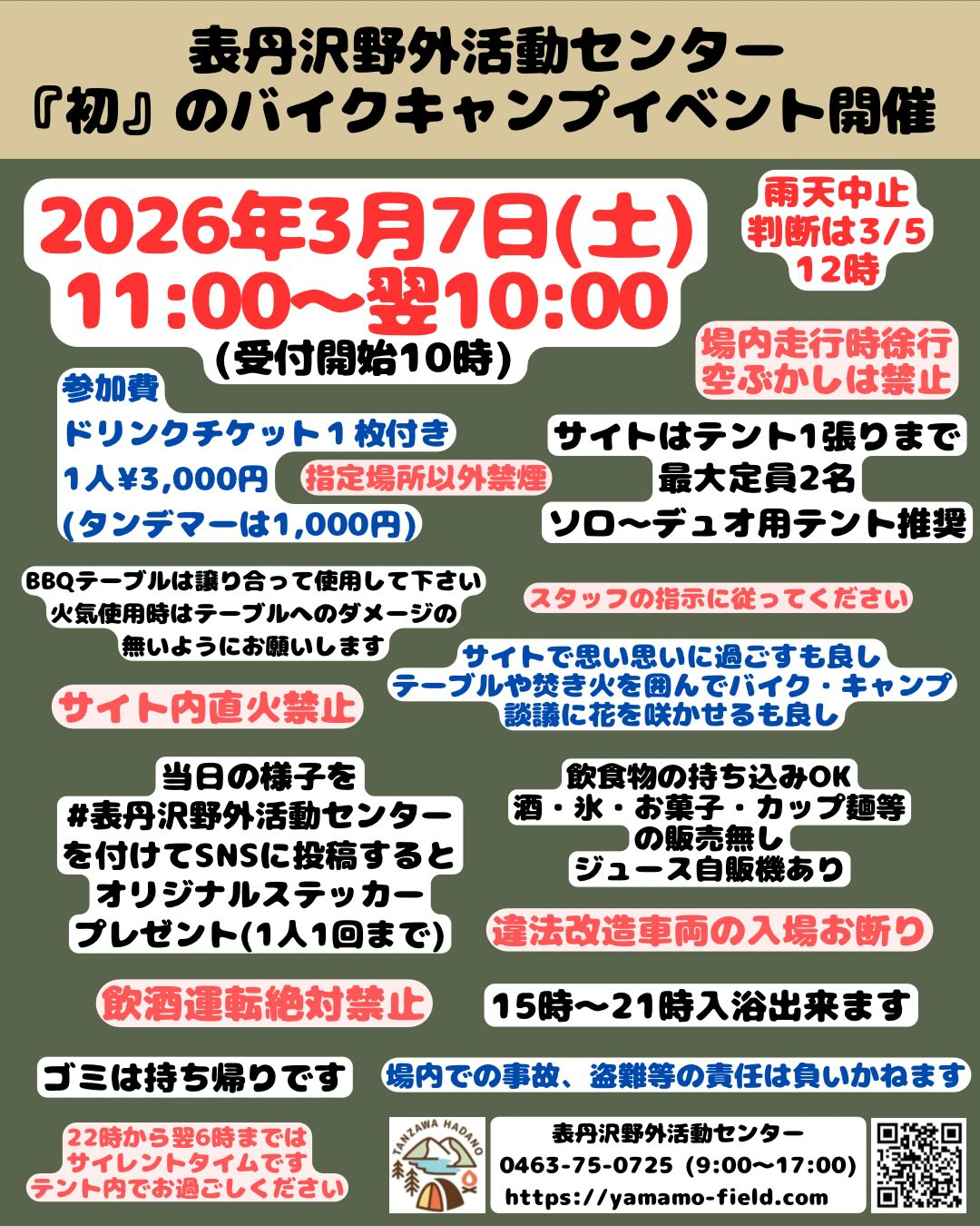 「表丹沢野外活動センター」初のバイクキャンプイベントの開催です!