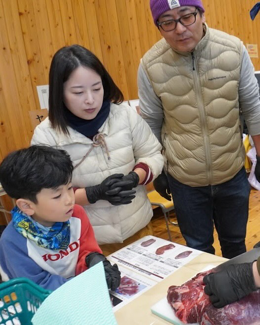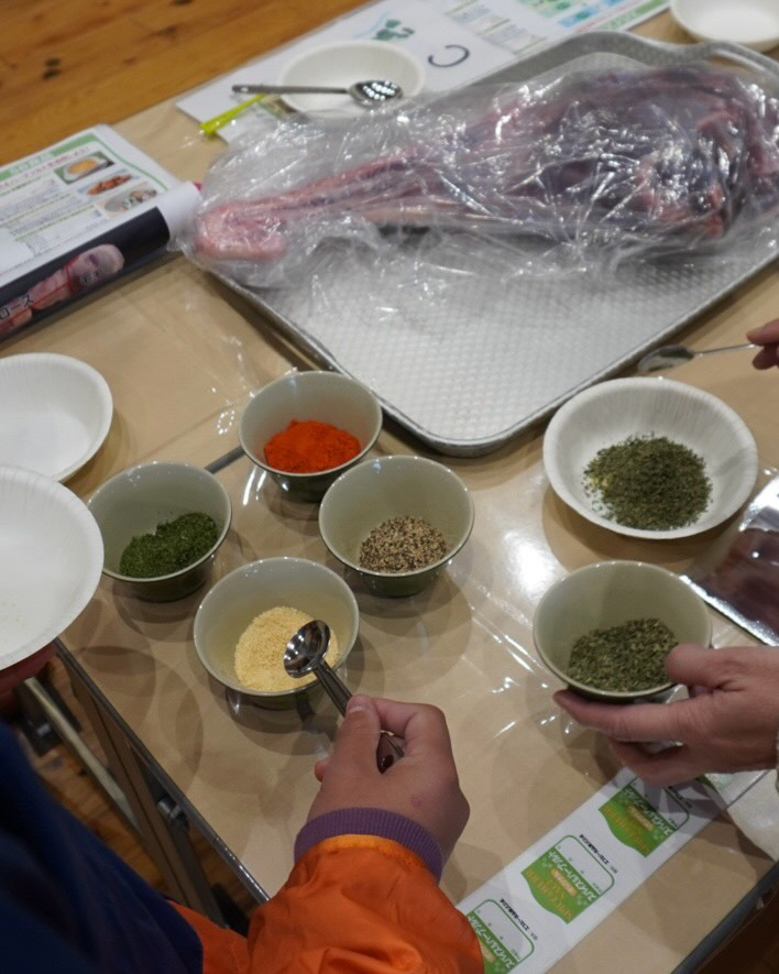 藤木シェフ、ジビエ協会の五味様・メンバーの方々によるセミナーから始まり、SB食品の方々によるスパイス講座や、牧島議員のご来場などを経ての解体体験は、大人も子どもも積極的に、でもおっかなびっくりしながらの作業でした。